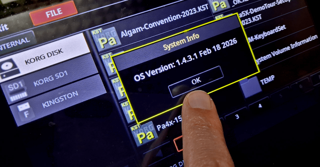 Il 12 febbraio scorso, Korg aveva annunciato un nuovo aggiornamento del sistema operativo per Pa5X, che raggiungeva così il livello 1.4.3; ma, dopo appena sei giorni (il 18 febbraio) l’azienda italo-giapponese è intervenuta nuovamente pubblicando una versione correttiva 1.4.3.1 per sistemare un guasto software involontariamente generato sulla versione rilasciata pochi giorni prima (in particolare, si verificava l’inattesa interruzione delle note prolungate da pedale Sustain durante il cambio dell’elemento attivo dello stile).