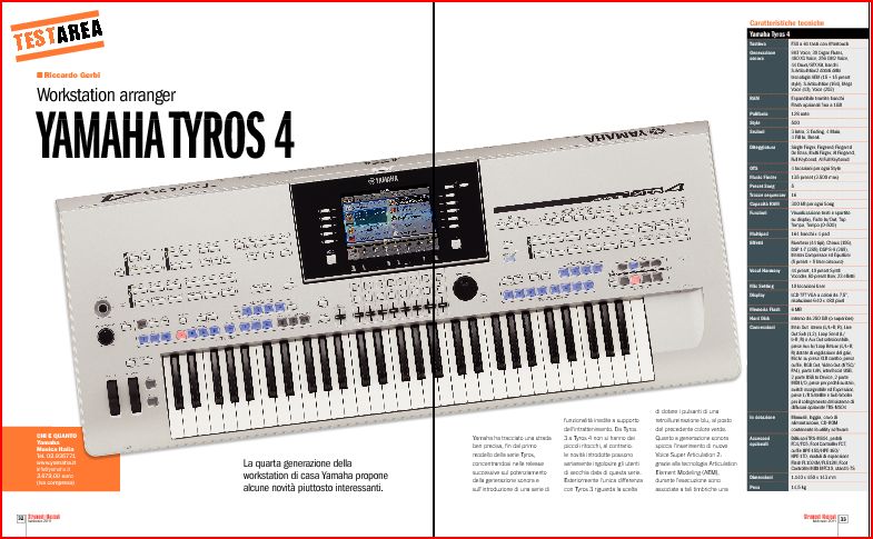 Ieri ho acquistato in edicola il numero di febbraio del mensile Strumenti Musicali: annovera la recensione di Yamaha Tyros 4 firmata dall’amico Riccardo Gerbi.