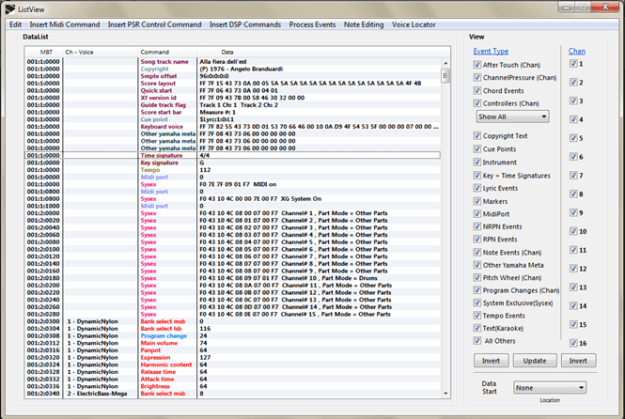 - Copiare, stampare e modificare gli eventi MIDI, anche fra due file diversi (urca!).