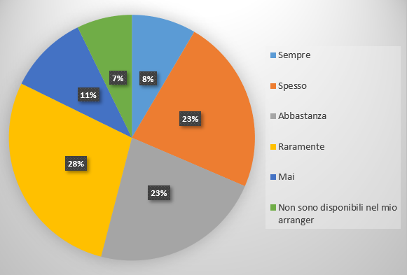 Risultato. Praticamente un plebiscito. L’87% dei partecipanti al sondaggio suona un arranger da almeno 10 anni. Il campione è quindi molto significativo per i suonatori di arranger di lunga data. Molto meno per i nuovi ingressi.