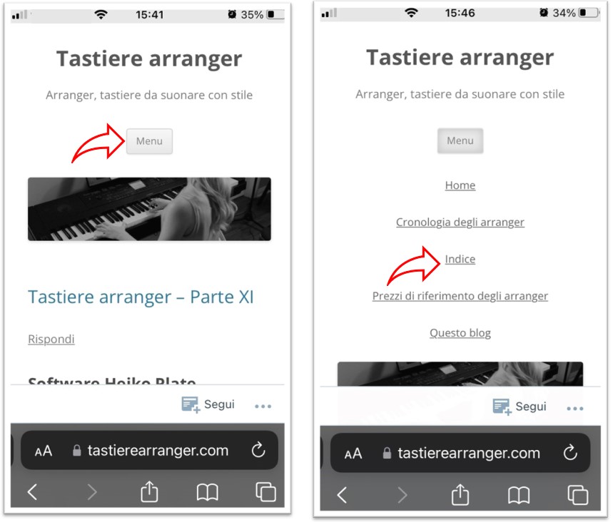 La pagina Indiceè sempre raggiungibile, da qualsiasi pagina del blog, facendo clic sulla barra dei menu. Se state leggendo il blog con un schermo grande, il menu con il link dell’Indice è visibile in alto; se invece state leggendo il blog da uno schermo piccolo (tipico di uno smartphone), allora il menu va prima aperto toccando il pulsante omonimo; e poi si potrà selezionare la pagina Indice.