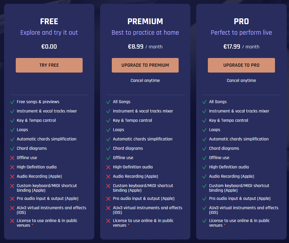 A differenza di un arranger, non è possibile modificare le singole note né creare Intro o Ending personalizzate: Jamzone non è un arranger e non intende esserlo. Non lo sostituisce, ma lo affianca – e, in alcuni casi, lo supera soprattutto quando serve il realismo del brano originale. È una soluzione efficace per suonare dal vivo in feste, eventi, cerimonie, e locali da piano bar; a casa e in studio, si rivela utile per fare pratica ed esercitarsi. L’accesso alle basi avviene tramite abbonamento e il prezzo della versione professionale è non particolarmente economico.