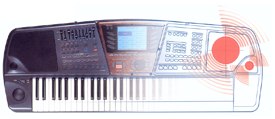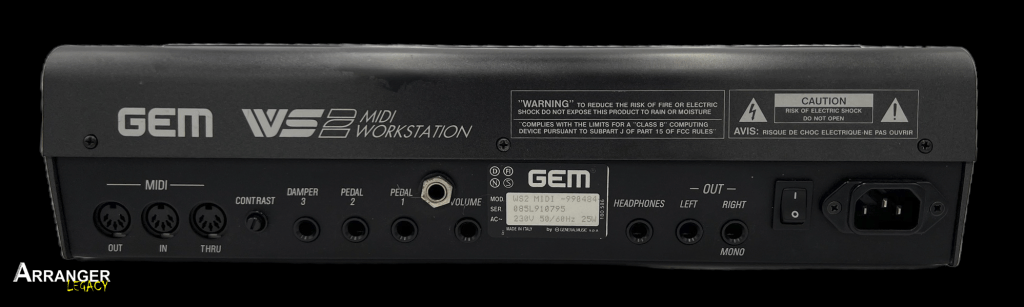 La tastiera era composta di 61 tasti con dinamica e Aftertouch, la polifonia era di 64 note, i suoni PCM della wavetable derivavano in gran parte da GEM S2. Erano disponibili funzioni di Sound Edit e Sample Translator. Erano 4 i processori effetti divisi in 2 gruppi – 24 riverberi e 32 modulazioni programmabili per ciascun gruppo. I 61 tasti erano mappabili in diversi modi operativi: Full Keyboard, Upper/Lower, Multi e Split. Fra i controlli fisici, spiccava la mitica Track Ball già vista su WS2 per il controllo di Pitch e Modulation. Degno di menzione era il display LCD grafico (320 x 240) retroilluminato e con contrasto regolabile. Gli stili di accompagnamento di serie erano 192 con 32 locazioni aggiuntive per programmazioni personali. Fra i diversi tasti utili, c’era Single Touch Play, un pulsante ereditato dalle tastiere Technics, che consentiva di associare otto performance diverse a ciascuna variazione dello stile. Lo strumento consentiva di comporre le proprie song grazie al Sequencer di bordo che ammetteva la gestione di 16 song MIDI o proprietarie indirizzabili fino a 32 tracce. Era possibile eseguire Standard MIDI File direttamente senza dover attendere i tempi di caricamento, che erano una normalità nei prodotti dell’epoca. Sembra di parlare davvero di un’altra era, quando – scorrendo le specifiche tecniche – compare un’interfaccia SCSI per collegare unità di memorizzazione dati esterne ed evitare l’uso di centinaia di floppy disk. Oltre ai potenti amplificatori di bordo (25W + 25W) si segnala un’interfaccia audio/video con processore vocale. Pesava abbastanza: 15,5 kg.