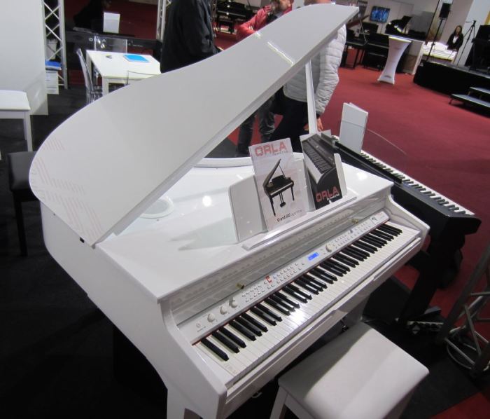 La tradizione continua anche nel nuovo millennio e quest’anno Orla ha presentato a Francoforte il nuovo pianoforte codino Grand 500 che va a migliorare sensibilmente quanto si era visto nel precedente modello Grand 450M. Il pianoforte presente in fiera è di un elegante colore bianco con finitura lucida: Orla ha investito seriamente per rinnovare e migliorare la tecnologia di questo prodotto: i risultati si vedono grazie ad una tavolozza di suoni ampliata a 362 voci suddivisi in 10 famiglie e arricchita grazie alla nuova tecnologia di campionamento ad alta risoluzione. Come il predecessore, gli 88 tasti sono di produzione Fatar, modello TP40 GH, e la polifonia è di 128 note. Il pianoforte può essere suonato in modalità GRAND PIANO, oppure richiamando uno degli altri 362 suoni in modalità MAIN (una sola voce), DUAL (due voci in sovrapposizione) oppure LEFT (mano sinistra e mano destra suonano due suoni diversi). Questo strumento potrà dare maggiori soddisfazioni a chi lo suonerà, potendo sfruttare nuovi effetti Reverb e Chorus.
