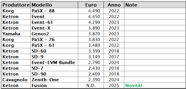 Pingback: Oscillazione prezzi arranger | Aprile 2025 | Tastiere arranger