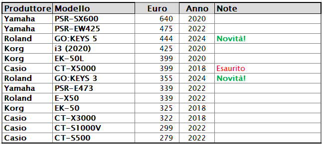 Pingback: Oscillazione prezzi arranger | Novembre 2024 | Tastiere arranger