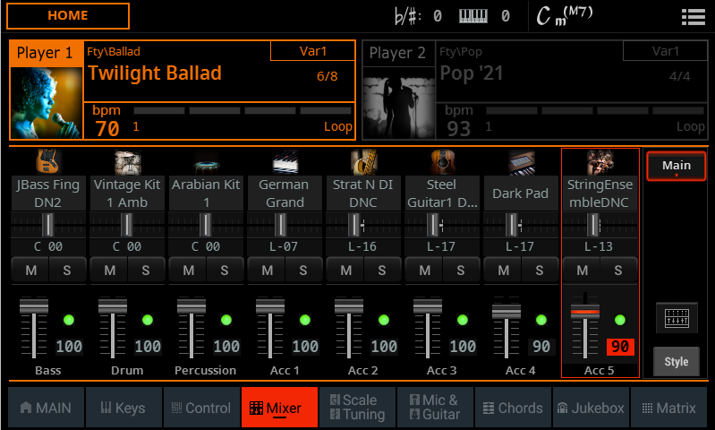 Mentre un SongBook può contenere migliaia di titoli, al suo interno si possono creare piccole scalette mirate (Set List), vale a dire raccolte di elementi richiamabili con i tasti del pannello dello strumento. È solo un modo ancora più rapido per richiamare le impostazioni e avere sottomano solo quelle che servono in una specifica serata.