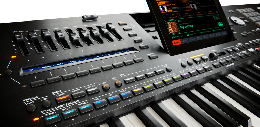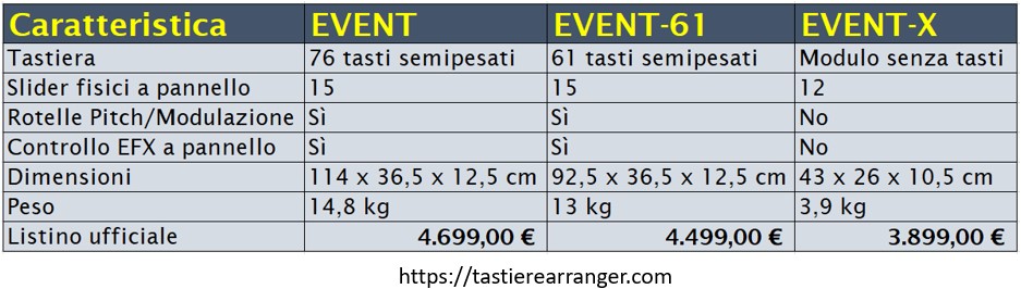 Il primo modello che commentiamo oggi si chiama Fusion (nome bellissimo, vero?) ed è uno strumento interessante soprattutto per chi fa musica etnica: il motore e l’anima sono quelli di Event, ma è disegnato su misura dei generi musicali regionali di mezzo mondo (Turkish, Balcan, Arabic, Greek, Irish, Brasilian e così via). Fusion pesa 11kg, ha 61 tasti leggeri, risorse un po’ più limitate rispetto Event-61, ma offre pulsanti ad hoc per le scale arabe e ti conquista per il look vintage. Si collocherà in una fascia di prezzo molto più concorrenziale rispetto all’ammiraglia.