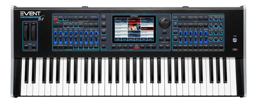 Pioggia di modelli nuovi in casa Ketron. In questo principio di 2025, la casa italiana si dimostra in grande salute, ponendosi in cima alle classifiche di innovazione degli strumenti a tastiera e arranger in particolare: chi altri può vantare oggi questa esplosione di idee nuove nel settore? C’eravamo lasciati – solo l’altro giorno – interrogandoci sul diradarsi endemico degli arranger nell’industria musicale, mentre proprio Ketron si stava preparando dietro le quinte a stupirci, grazie ad un fragoroso botto per un annuncio multiplo. Eccoci qui, infatti, pronti ad ammettere che è bello essere smentiti nelle proprie previsioni più sfavorevoli; ed è ancor più bello che a smentirci sia una piccola azienda italiana che sfodera oggi un’inventiva che i colossi giapponesi – in questa fase storica – non sembrerebbero interessati ad eguagliare (e anche qui: sarei felice di essere smentito ancora una volta!). Dunque, siamo di fronte a ben cinque modelli nuovi, di cui tre arranger: tutti in un colpo. La famiglia Event già vantava quattro versioni dello stesso strumento: il primo superbo modello a 76 tasti (Event), la sua versione ridotta a 61 (Event-61), l’edizione a modulo (Event-X) e il piccolo box super-compatto (EVM). Sono tutti strumenti ben noti ai lettori di questo blog, visto che ne abbiamo parlato qui più riprese. Alcuni di voi ricorderanno anche il risultato del nostro test diretto, pubblicato pochi mesi fa. Ora, proprio nei giorni antecedenti al Winter NAMM 2025, l’industria italiana scende in campo mostrando i muscoli e una varietà di versioni che pochi potevano aspettarsi. Onore al management dell’azienda di Ancona, complimenti a Sandro Fontanella, Maurizio Leonardi e Marco Panni.