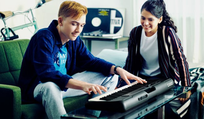 La tastiera è davvero portatile (6 batterie 1,5V AA LR6 oppure ricaricabili 1,2V AA HR6). Altrimenti in casa si può collegare alla rete tramite l’adattatore AC (modello PA-130).