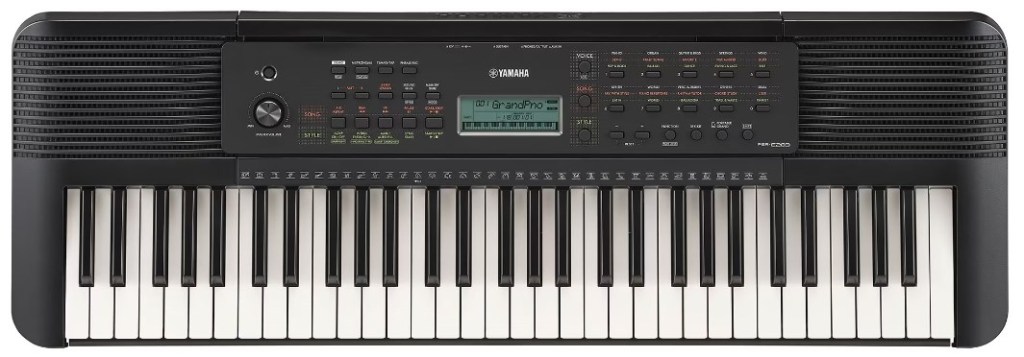La scocca è la stessa (94 x 10,4 x 31,7 cm) e il peso è lo stesso (4 kg); la leggerezza dei 61 tasti non dinamici (ops! fate attenzione!) è la stessa. Il generatore sonoro è sempre lui (AWM) e sfrutta 32 note di polifonia. Se questi dati tecnici vi sembrano poca cosa, ricordate che questa categoria di strumenti rappresenta il punto di ingresso ai modelli PSR-E ed è rivolta ad assoluti principianti. Lato effetti è presente il minimo sindacale: Riverbero, Chorus, Master EQ. Il sequencer di bordo permette di registrare un brano MIDI di 300 note al massimo.
