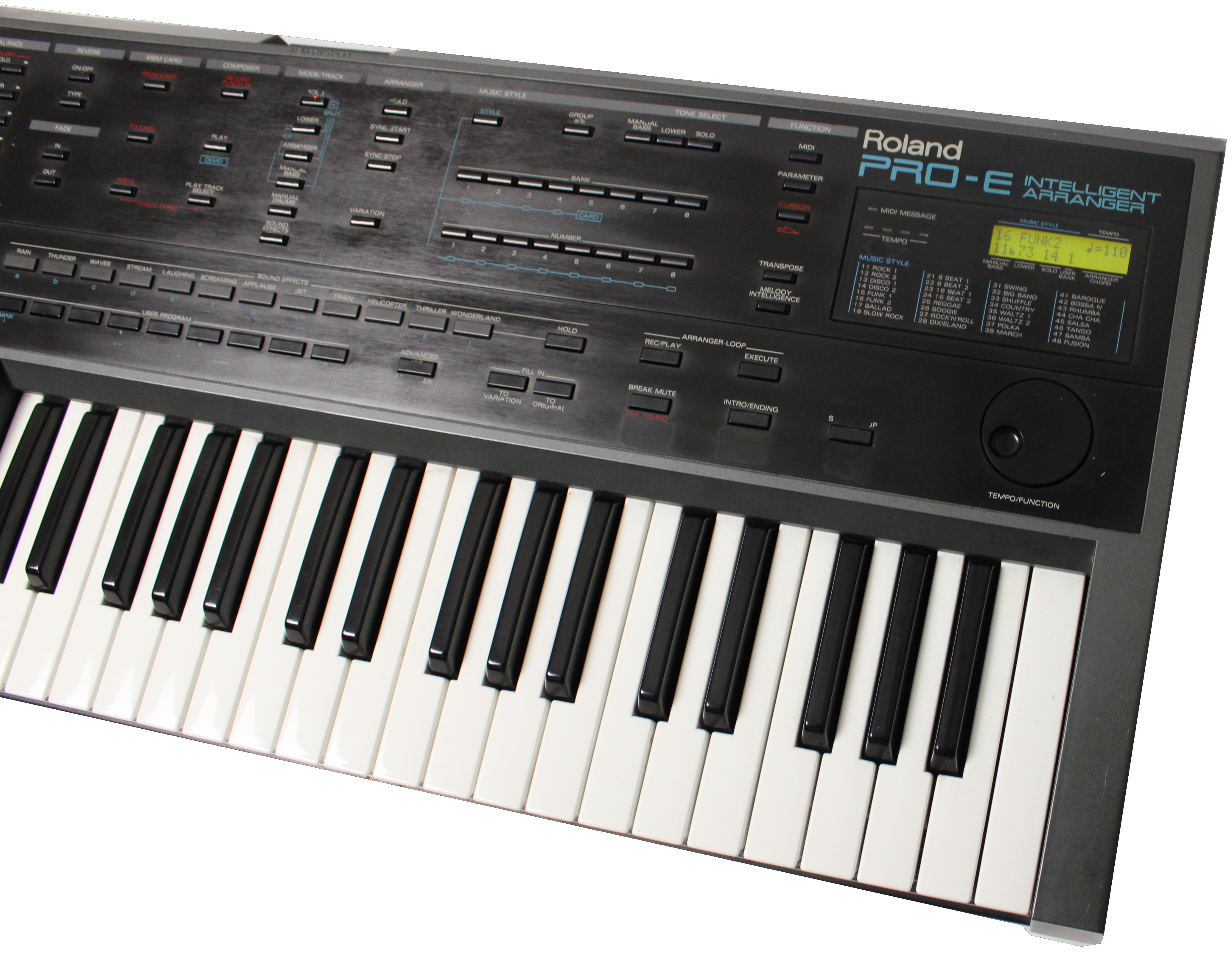 Il debutto del 1988 prevede di lanciare due tastiere arranger a 61 tasti molto simili fra di loro (E-20, E-10) a cui saranno affiancati altri due modelli l’anno successivo: una versione ridotta all’essenziale (E-5) e una versione più evoluta per professionisti. Si chiama PRO E: ha tre ottave soltanto, in base all’idea di essere suonata dalla mano sinistra di un musicista che ha un altro strumento a tastiera da controllare con la mano destra. Non è ancora un modulo ma l’idea è talmente buona che, subito dopo, i giapponesi ne deriveranno un expander (RA-50, stavolta Made in Japan).